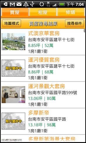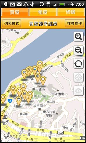 畫面與內容跟iPhone差不多,不過買屋、租屋、修繕等功能就拉到畫面的正上方了: