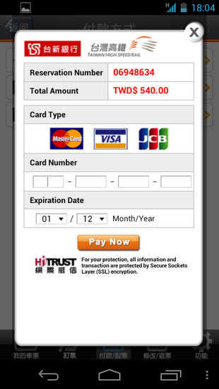 台灣高鐵 T Express 手機快速訂票通關服務(Andorid 版)