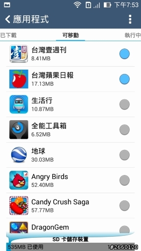 如果是內建16g的空間,基本上都沒辦法將軟體移到SD記憶卡上去你在應用程式看到的「於SD卡」或是「移至SD卡」所指的都是手機中的的空間(你可以試試將記憶卡拔出開始,那些軟體還是可以使用的話,就是存在手機中的空間而不是記憶卡)4.4不能使用記憶卡是指第三方軟體無法直接存取SD記憶卡的空間像是相機可能就無法將照片存在SD記憶卡