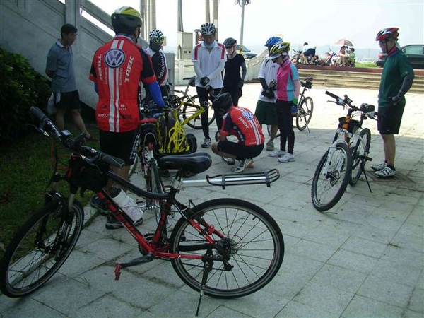 8/14因為參加四湖的大拜拜而臨時返回北港,想著或許有機會也能與北港的車友同遊,臨時查閱了一下笨港車隊的看板,發現8/15星期六一大早就有一團雙潭之旅,也不敢肯定是否能夠這麼早就爬起來,結果妹妹六點的時候提醒我該起床了,便匆匆地準備完畢趕往鎮公所集合,幸運地發現大隊還在廣場等候,而車輪卻也一如想像因為疏於保養胎壓不足,幫車胎打氣成了第一要務,感謝Matt的大力幫忙,這麼一折騰也就在來不及吃早餐的狀況下踏上了不歸路,可惜沒能在出發點照張紀念照,畢竟已經有七年未在清晨的北港公園聽聞國民健康操的廣播了。