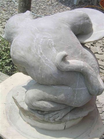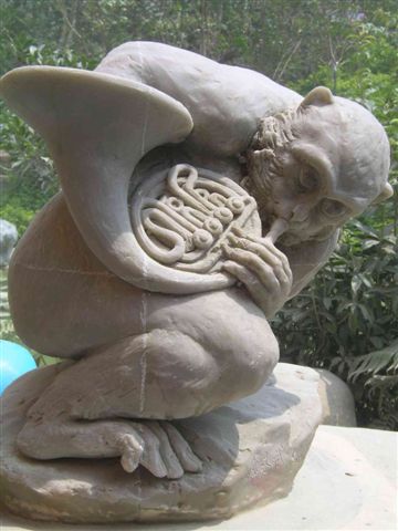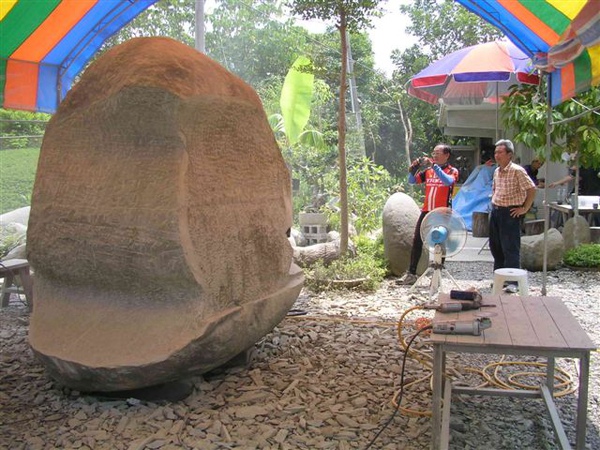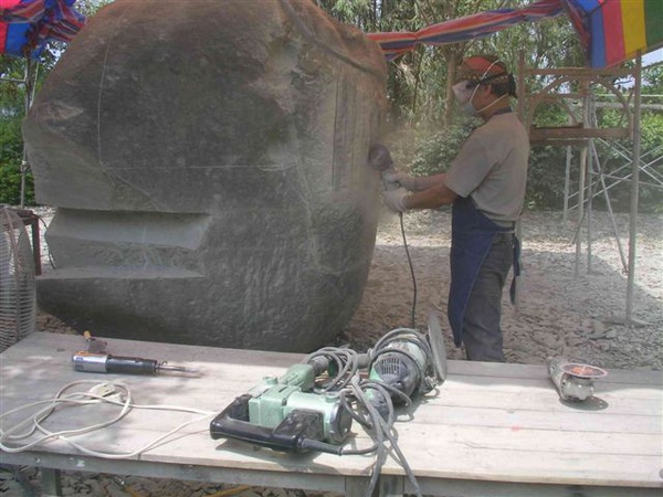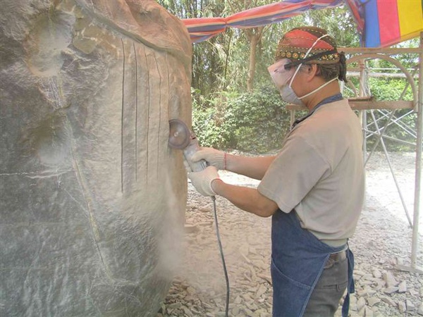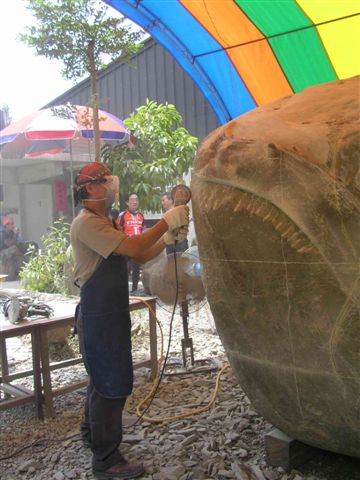 剛好現場正在石雕作業...蔡老師的作品"石猴"獲獎...