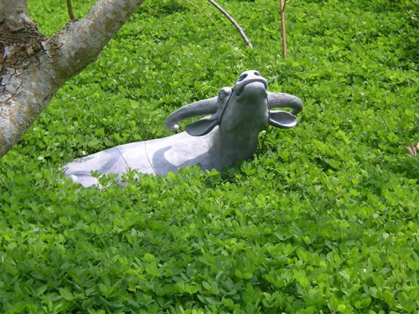 我們到訪的時間正巧是工人的休息時間,便跟著一起品嘗了普洱茶,不過偷懶沒有準備茶杯的我,很不好意思地還得跟主人借茶杯,拿著熟悉的陶杯來喝茶,閒逛著擺飾著各種作品的庭院,越發感覺到不虛此行了,我並不清楚蔡永武的創作理念,但是我一向很喜歡他所創作的大量生活用品,許多陶盆、石器搖身變成花盆、魚缸、裝飾,在這片小小的花園裡,可以知道這些作品並不是只可遠觀的藝術品,我以為正是在這樣被使用的過程中焠煉出獨特的美。