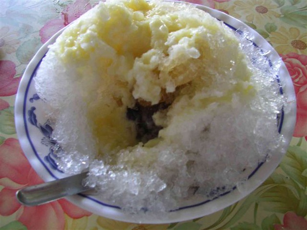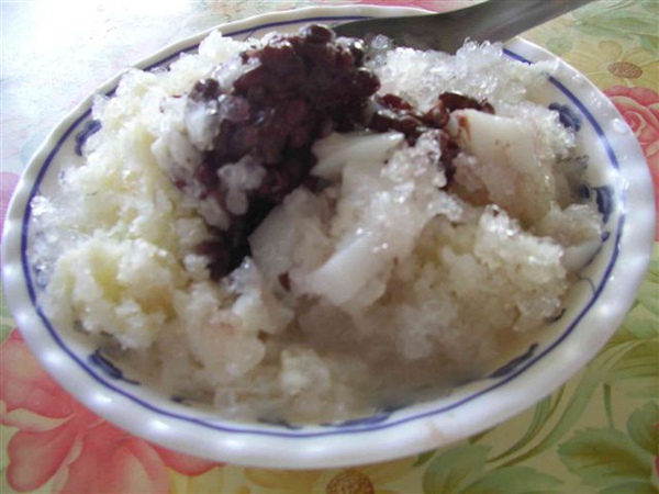 大家都點了招牌冰,我則點了杏仁加紅豆冰,紅豆大致上沒有問題,但是這裡的杏仁偏硬Q,並非想像中綿密的杏仁,雖然天氣很熱,但畢竟才剛吃過中餐,所以竟沒能把所有的杏仁解決,這裡的剉冰也是大顆粒的碎冰,不同於易入口的小碎冰,但應該也比較不易溶化吧!比較讓我訝異的是,南部的物價果然很便宜,這樣的冰一碗25元,同樣的招牌冰在新竹恐怕要價45元以上。