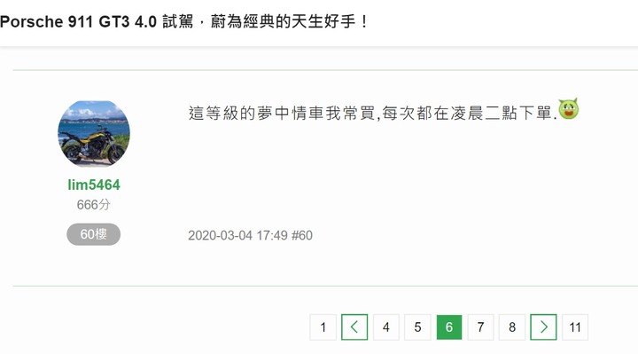 lim5464 wrote:好啦!賓士最棒,你快(恕刪) 你一天到晚作夢想買保時捷,你開納納還經常去保時捷版PO文裝13,一下子問加買延長保固,一下子問配備,不知情的保時捷車主還以為你很牛,原來你都是半夜兩點下單買保時捷的!你是用金虫買嗎?納智捷都已經超越保時捷了,半夜應該下單買URX才是!你