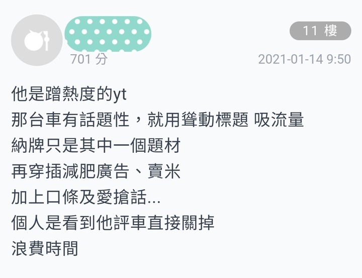 你吹上天的網紅是桃園某私立大學工工系畢業的,沒有汽車的學經歷,只是個到處蹭流量和話題的網紅。找些車主拍影片,不專業又不做功課,很多內容都是順著車主的話鬼扯,讓他們發發牢騷,哪一次為車主討公道了?