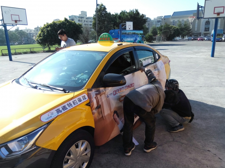 每次看别人車身彩繪貼紙 看的令人眼花獠亂心情狂放,正好公司老闆詢問是否有意願貼廣告,就把他當做免費的車身彩繪貼紙,每個月還有讚助費(廣告費800)可拿,何樂不為? 正好沒什麼有關 車身彩繪貼紙的文章出現,就讓我分享珍貴的圖片給大家 先貼後保桿,邊貼邊刮 同時有四個師父,一邊各兩個人 看到腳邊那瓦斯噴燈沒有? 貼完用燒的,越燒黏越緊 一邊完工 另一邊是同時進行,不解釋了 要拿刀把門把挖出來,順便把門型修出來 完工了,我們公司老闆豐田教主滿意的觀看 虐納 過程 換地方,拍照讓大家看 整個流程大約二十分鍾左右