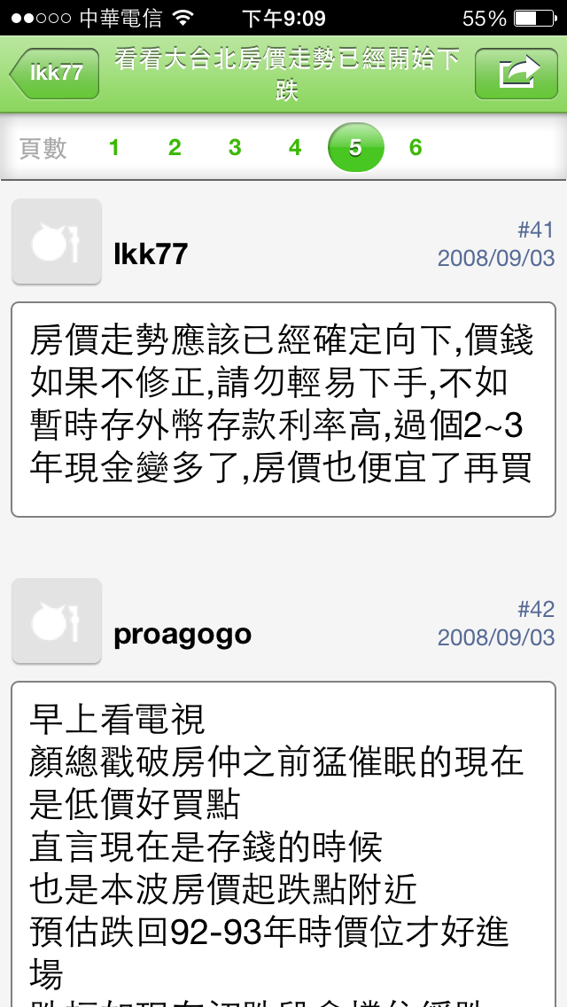 lkk77 wrote:如果,租金16萬/月的房子,當初5300萬賣了 , 我懷疑原屋主會賣這店面(是人就會算)...(恕刪) 沒甚麼好懷疑的,我也買到一間,或許我是跟鬼買的bcn2718大 對房屋市場的了解是比一般人多做了功課,回頭看起來2010~2011年的房價,跟2008年比起來是沒有回檔lkk77加入好友 加入黑名單2013-11-04 17:22 #178回覆文章私人訊息引用連結載入圖片引言收藏回報obmwkimo wrote:不要因為別人投資眼光準,就開始扣帽子說是仲介好嗎..(恕刪)為什麼 說是仲介就是扣帽子?仲介也是正當職業,不偷不搶,你對職業有偏見? 我當初買房也是請仲介幫我留意適合的房子我只是好奇 bcn2718大 對房屋市場的了解不是一般人的程度我對仲介沒有偏見,不需要扣這樣的帽子給我,只是我比較好奇看空房市的會對仲介有好感?在01普遍不推崇"房屋仲介"這個職業的地方,詢問別人的職業是不是仲介?我今年40歲,或許核電廠爆炸,我的資產就歸零,但是還沒爆炸前,不一定是吃鹽比吃飯還多的人,講的話就一定有道理,成敗論英雄.