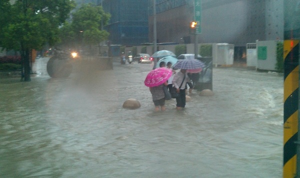 下面這些照片,及網路上的許多討論可以讓大家判斷一下是不是道路淹水,2小時會不會退