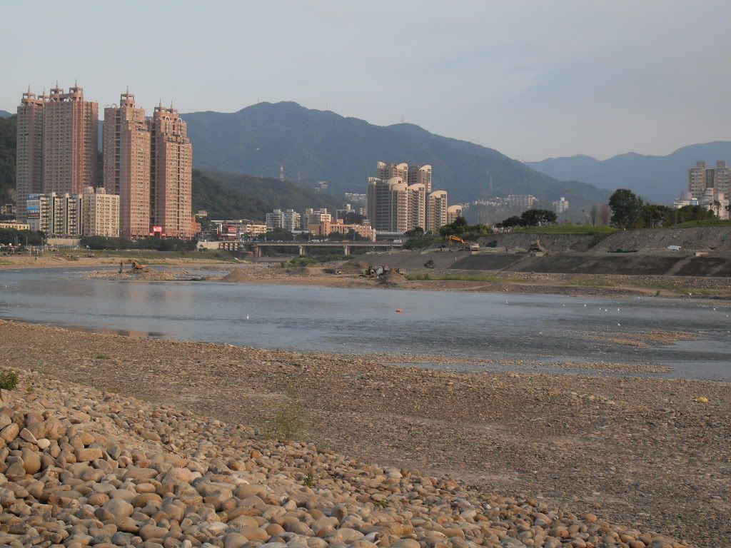 之前在新店河堤拍的,因為站在新店東岸,所以拍出去對面是新店西岸安康,如果是高樓層,那對面安和路一帶應該會有工廠鐵皮屋..........。如樓上所言,最後一張圖應該可以看得出來,河流在碧潭橋就過濾越來越少了。