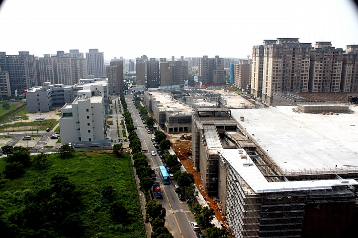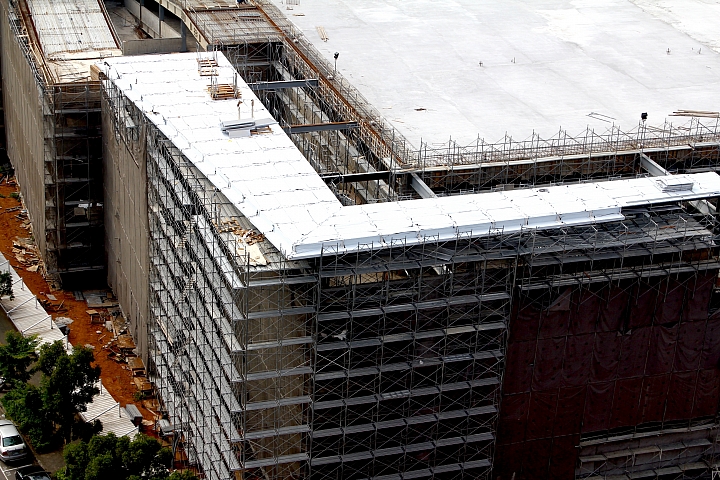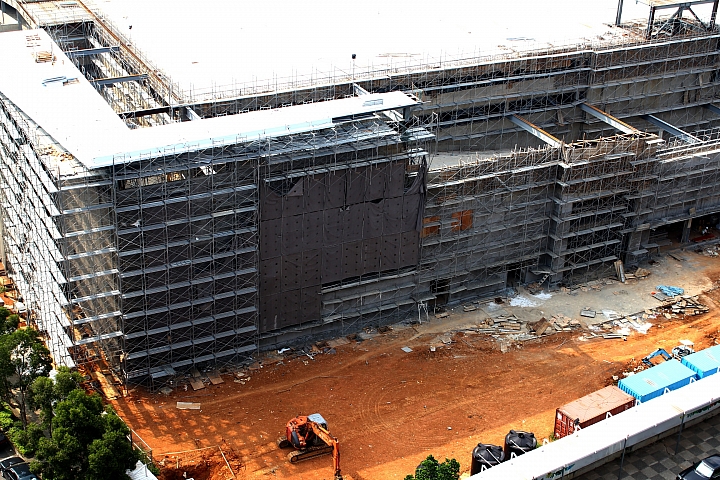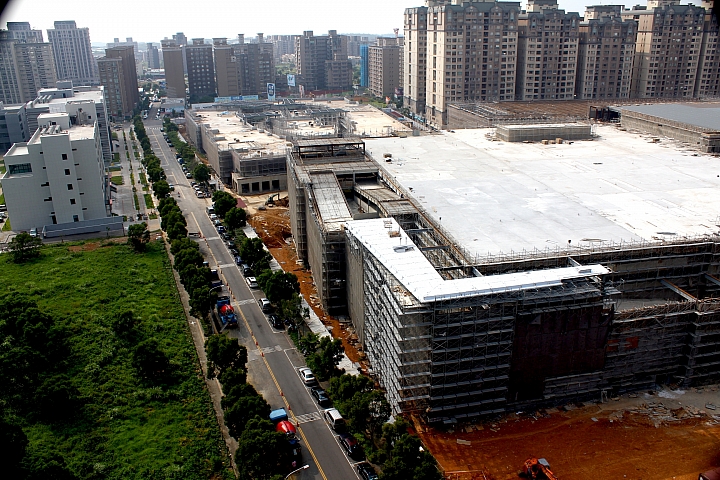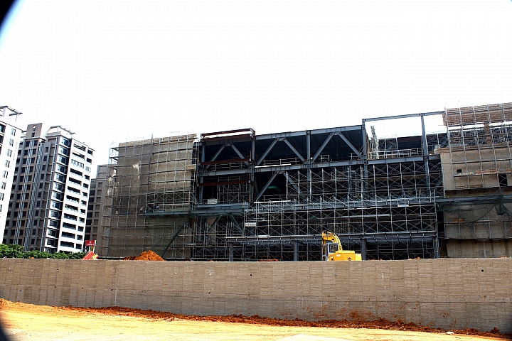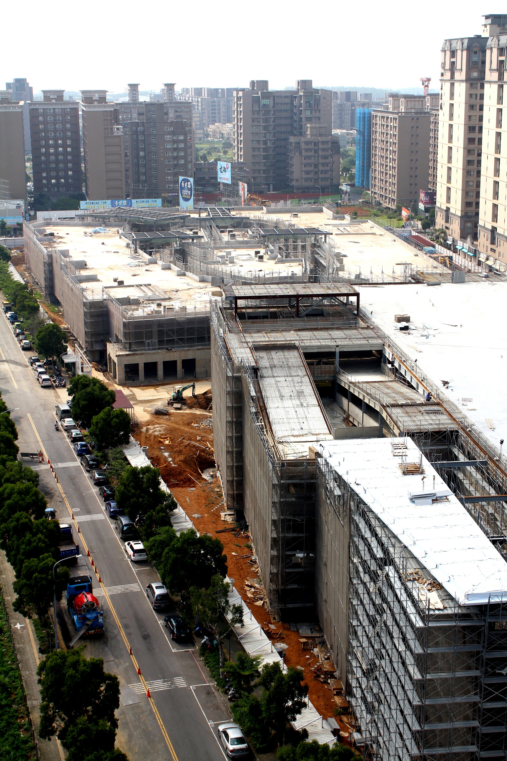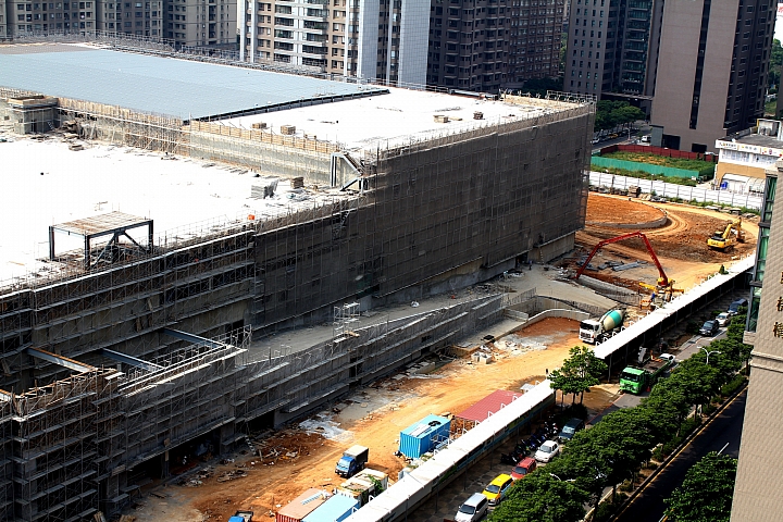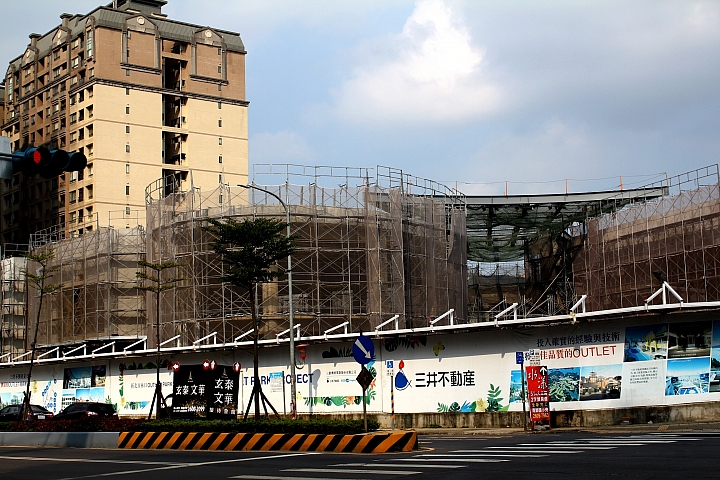 鄉民有招喚,有更新 其實還是落差蠻大的基本上不管屋頂或外牆灌漿工程幾乎大部分完成除了燦坤那面留著通風?搬運物件方便?戶外樓主體也首次看到全部成型雖無法如之前說的9月底開幕這進度應可在年底左右完工或者至少農曆年前跟昕境一樣來個試營運....(該不會跟捷運一起通車營運:迷之音)話說林口警分局與消防隊只怕是新北境內同單位最潮的大太陽+逆光+遮光罩黑邊亂入.....隨便拍拍