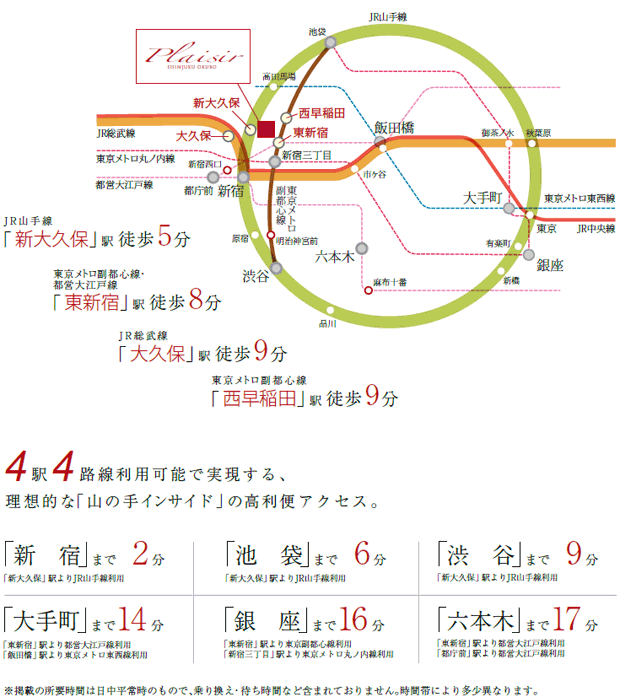 2. 東京都新宿区大久保、早稲田大学大久保分部、山手線「新大久保」駅徒歩5分。4駅4路線利用可能: