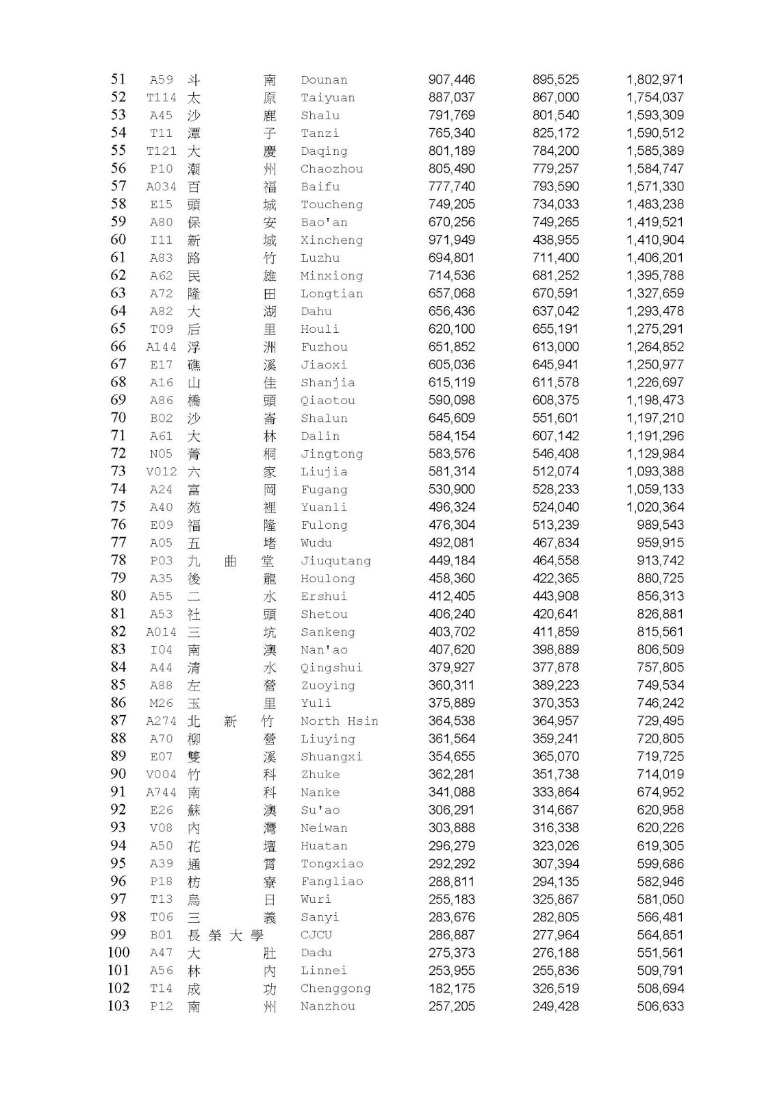 nszaa wrote:六家線主要是作為新竹...(恕刪)六家線其實可以作為一個評估的指標,等哪一天你可以證明有很多很多乘客會在北新竹站上車然後這些人到了新莊站就會下車,或者反過來也行,那再來談都會捷運系統吧! 北新竹站與新莊站(竹科站)的人數如下,都是七十多萬人次。2012 臺鐵各站旅客人數排名 所有車站