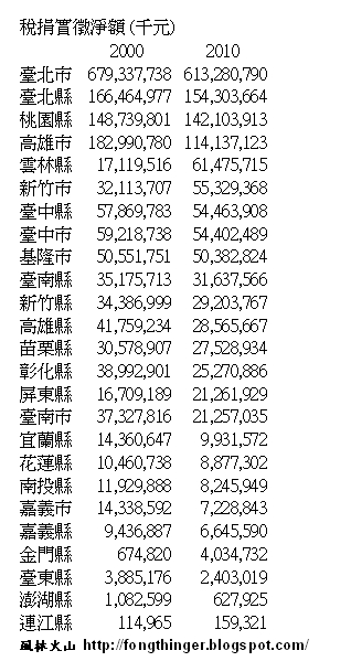 看到從2000年到 2010 年各縣市的繳稅, 新竹是少數幾個繳稅增加的縣市, 2010 年繳的稅還比未升格前的台中市還多. 對比新竹市所受到的待遇, 新竹真的是被中央忽視的城市.改制前2000年與2010年十年來各縣市稅捐實徵淨額比較
