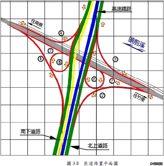 ,因此看來快速道路的閘道,只有往南那一側有上下出入口了。可參考"高鐵橋下連絡道延伸至竹科委託初步設計-期末報告"。