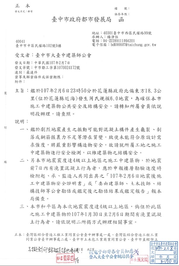 請問大家,像這次花蓮大地震後,如果大樓還在興建中,有需要全面停工檢查嗎?