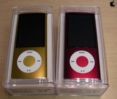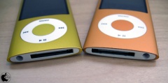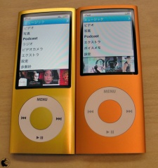 Macお宝鑑定団Blog羅針盤網站刊載第四、五代「iPod nano」外觀比較:- 第五代螢幕加大0.2吋,螢幕文字列的顯示也多了兩行。(照片)- 確認按鈕大小相差無幾,不過周圍轉盤寬度略窄、標記符號顏色也略為加深。(照片)- 最大的差異在Dock、耳機孔配置位置顛倒,也影響了一部分他廠週邊的相容性。(照片)- 向來Apple Store限定色除了紅色外,多加了黃色,一般通路販售仕樣則減為七色。(照片)
