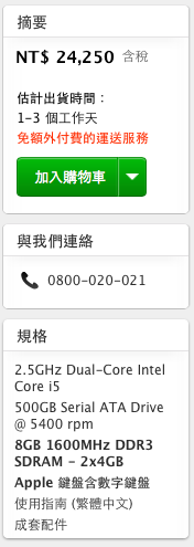 預購入MINI規格:2.5GHz 雙核心 Intel Core i5(感覺這等級就夠用了)