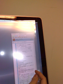 看到那可怕的日光燈了嘛? 沒錯如此光亮的鏡面螢幕實在無法長時間工作所以這款霧面螢幕保護貼就是他最好的功能發揮所在