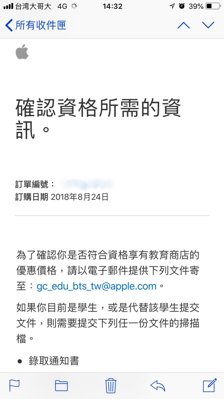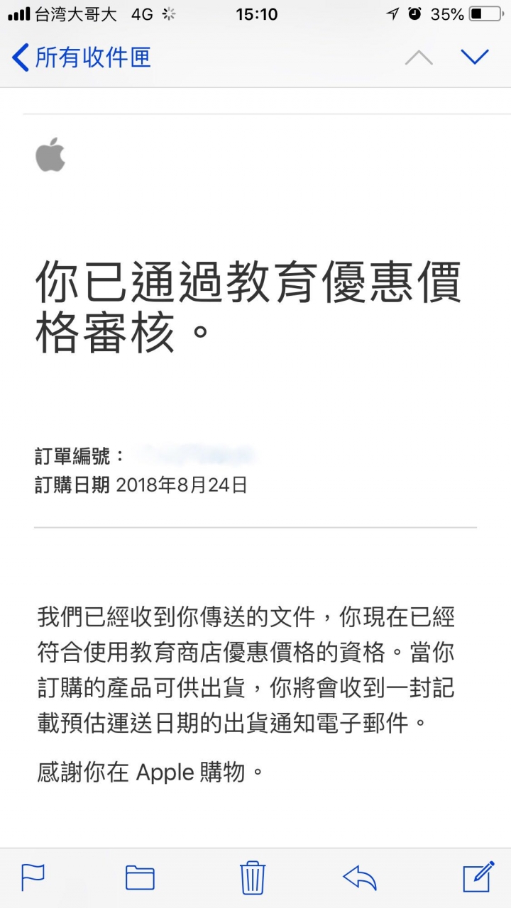 請問有人今天下訂 現在還沒收到教育審核的通知信嗎?