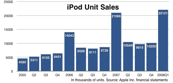 many people are talking about the decreasing iPod sales. but Apple sold 14 millions of iPod last year. even if it decrease, it will still sale 12+ millions EACH year. Who else can do that? Sony will be very happy if they can sell 4 millions of PS3 each year, and even the super popular Wii don't sell 12M each year. I just don't think Apple need additional volume to negotiate lower price on parts.