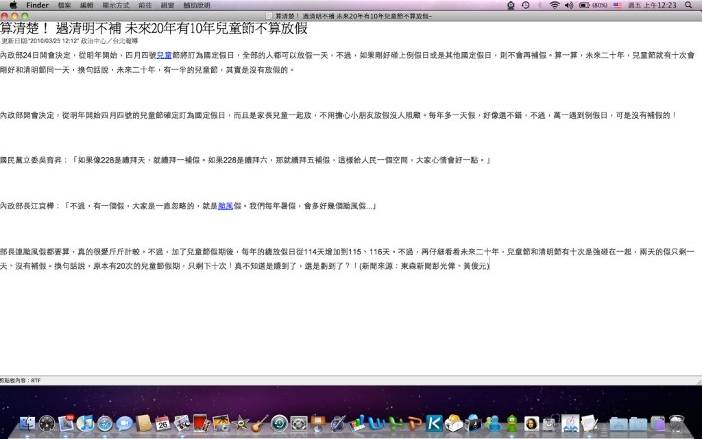 現在的問題是,我對GPU不太有需求,頂多是會開virtual box跑一下,所以13最低階or15最低階都能滿足我的需求。只是現在用上一代非unibody macbook,真的覺得在dock+menu的影響下,開啟程式以後可視範圍實在不夠大,原本1280*800的寬螢幕,高度就不是很有優勢,上下占掉一些后,開啟頁面讓我感覺我在用epc 700那種800*600的等級……打page,偶爾畫個流程圖,預覽一些文檔,都覺得礙手礙腳,隱藏dock以後有所改觀,但是又不方便,每次開啟太多東西,不想用cmd+tab的時候,都要去在下方等待dock浮出,然後再切換……