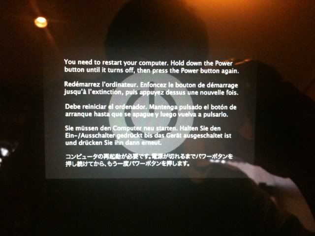 上月才買的MBP 13", 沒有改動過硬件一直快樂使用中今日用了一個下午, 都是上網聽 iTunes 之類的簡單動作竟然出了個四國畫面恐慌中怕了下面的畫面以作記存不知道是MBP 內的硬件出了問題也不知道是否因為當時我正插著一個 2GB 的USB drive 造成(但這個USB 已用了一段日子一直沒問題)請問各位大大, 這個問題是否只要一出現, 往後就會經常出現呢?突然對我的MBP 失去了信心謝謝各位回覆