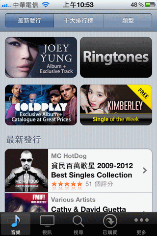 iPhone 手機的 iTunes 首頁也有 (如上圖),在 音樂 最新發行 這個頁面,標有 Free 黃色斜置橫幅,很明顯。台灣 iTunes 開店時就已開始有 Free 歌曲了。 不過上周的 Free 點進去後,結果竟然是收費的,令人傻眼,很高興本周恢復正常。※ 追加: 現在換本週 Free APP 不正常了。本週換 Diptic 了,手機 AppStore 首頁 Free APP 還停在上週的 Pinball,因此點進去就是要付費的了。