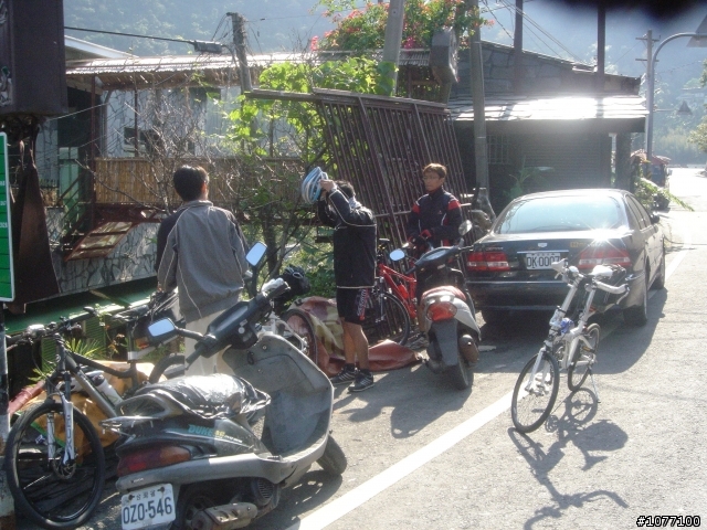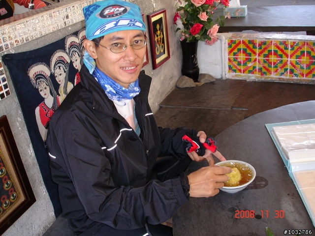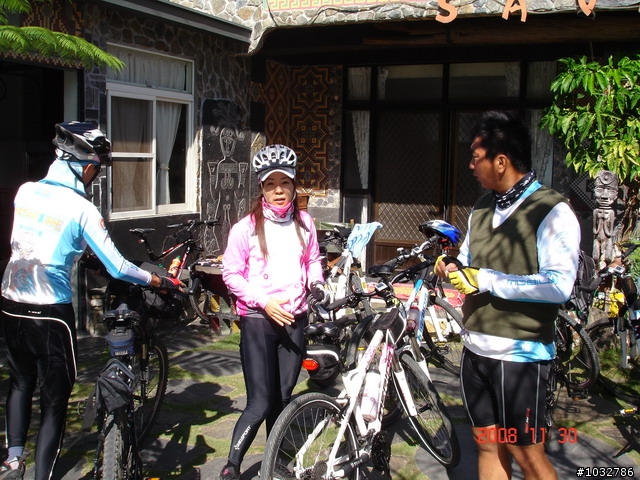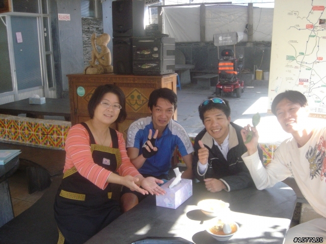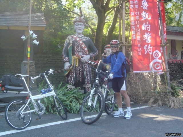 照片整理好了.台24線上.天色微明 (早晨滴微風.我們向遠處出發中...)四個阿呆在超商前合照出發前準備-1出發前準備-2三地門小橋大家努力往上爬 (一路縱隊.真是有紀律啊)趁現在能笑趕快笑女勇腳一枚哪裡來的嘻哈二人組啊?酷似茂林龍頭山, (阿山頂怎麼沒蓋涼亭)大伙於檢查哨前短暫休息大伙在檢查哨前喇賽搞笑三人.其程度絕不亞於六義幫.沒加入屏風實在可惜通過檢查哨~出發~累死狗通過崩坍路段 (公路局真是貼心.怕車友沒輪胎換.擺了這麼多在這裡)保母車在後警戒.實在貼心伊拉橋可愛木雕這位仁兄笑的實在有夠陽光燦爛.這張可以拿來當作相親用耶.(如果已經娶妻也沒關係.改當兩妻動物)伊拉大合照-誰的嘴巴比較大伊拉大合照-耶..你的卡倉擋住了耶.後方的阿計不知叫我要幹嘛..是要我拖車還是載水.我只好趕快酸喔...(你跑的真快.太沒道義了)由伊拉出發.往神山前進...這是佛光普照嗎 (這位葛格..你跟佛祖有緣喔)一路上喇賽.志銘開始講古他講過了.我們2個不要拆穿(這句4個人都聽的到)抵達神山愛玉.與老闆娘合照大家也到了曬愛玉 (把它直接丟進水壺的話.跟水混合搖一搖就變整罐的愛玉了.但是整罐變固體要怎麼喝啊)抵達霧台 (好醜的姿勢)霧台石板屋上可愛的雕像 (我家屋頂也來弄一個)有人遙遙領先.(他騎車時不吃香蕉.吃大量蕃薯.遇到要加速時就放屁.可瞬間加5km持續1分鐘.跟汽車用氮氣瓶有異曲同工之效)崩坍路段.可怕但也壯觀志銘要做法了做完法.功力加倍往阿禮途中的美麗山景阿禮社區合照 辛苦總是會有代價的回到霧台社區-玉美小吃店四菜一湯 (龍鬚菜加蛋黃..第一次看到)吃飽喝足.出發下山了.回到伊拉橋-看妹中 (那是我先發現的耶)