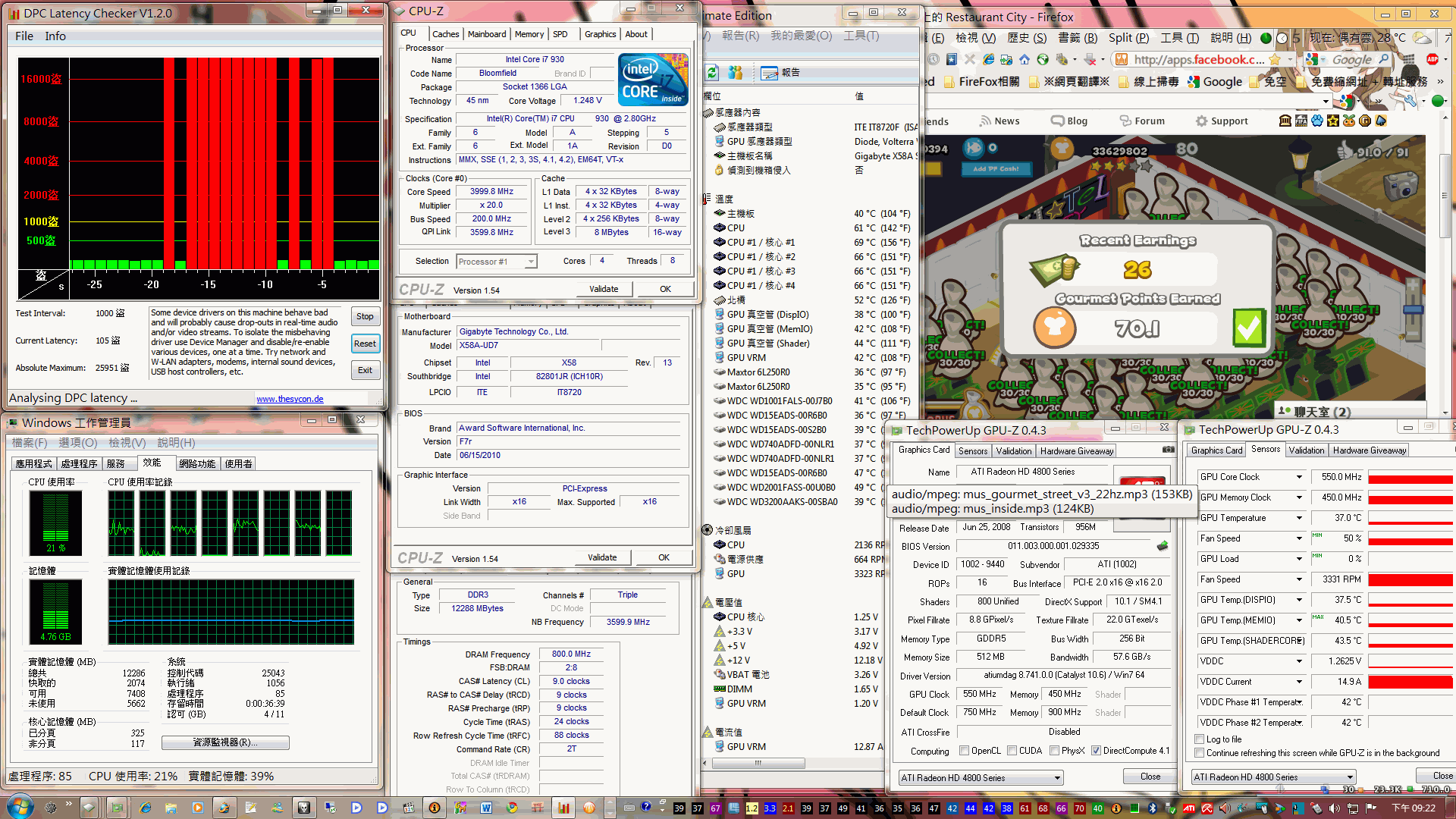 在回報給技嘉後更新BIOS才多少解決了一大半的問題,現在變成59℃→60℃時DPC Latency Time會暴衝一次,但要等到56℃→55℃時才會再暴衝一次,因為讓變化的間隔變大了,且DPC Latency Time由最高25000us降到約5000~6000us;況且我自己也為此換了CPU散熱器來減少達到該監控溫度,所以影音才有正常的表現