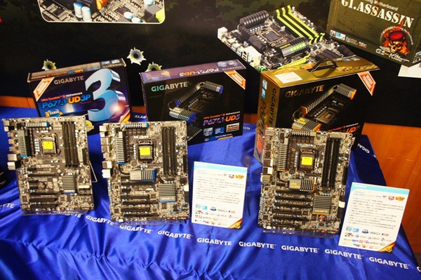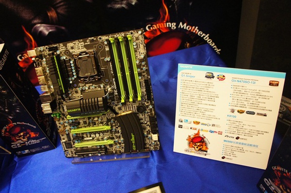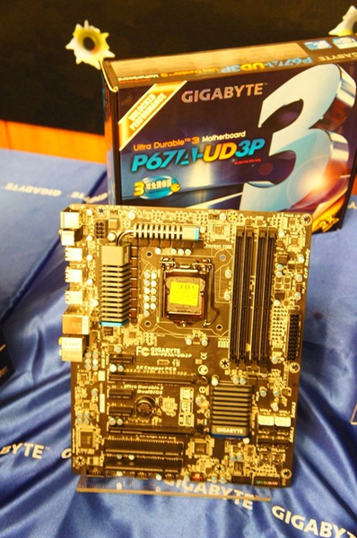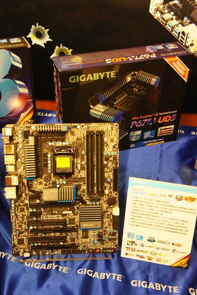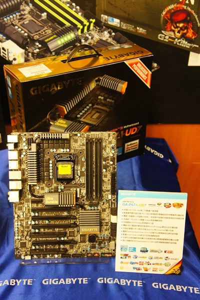 在G1-Killer遊戲專用主機板展示機旁,也看到了三塊配合Intel Sandy Bridge CPU的P67主機板。
