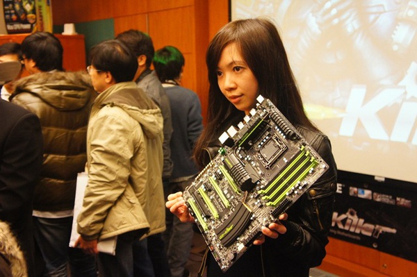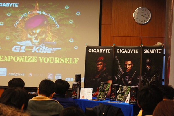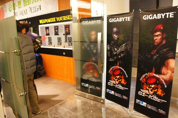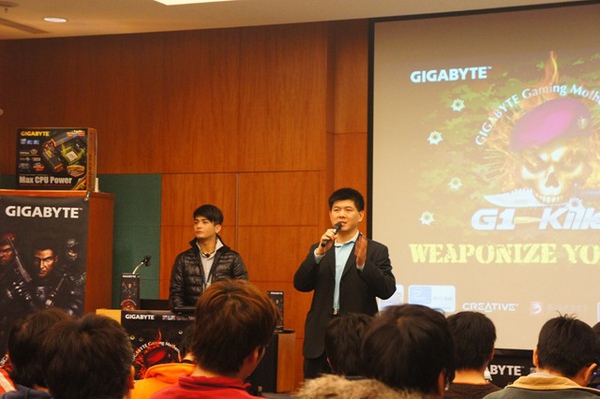 而技嘉也應在場媒體要求,請現場的技嘉員工權充模特兒,展示G1 Assassin。