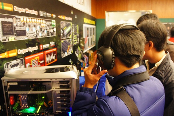 因為音效是G1-Killer遊戲專用主機板強調的重點之一,展示機也配備了耳機,讓大家體驗聲音效果。