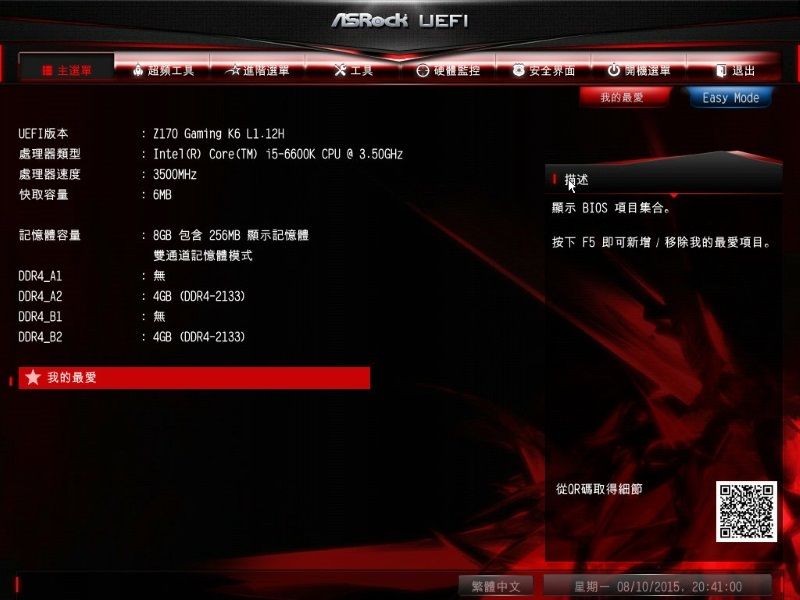 對於比較進階的玩家來說,也可以按 F6 進入以往 ASRock 比較偏向 Legacy BIOS 的 UEFI 介面來進行選項微調。