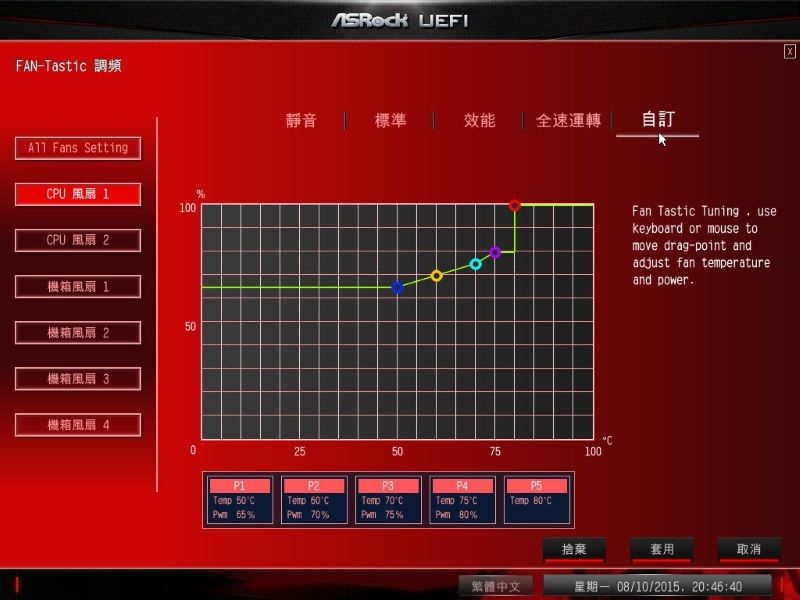 另外在這次的 BIOS 內也整合了原本在 9 系列軟體內的圖形化風扇轉速曲線調整功能。
