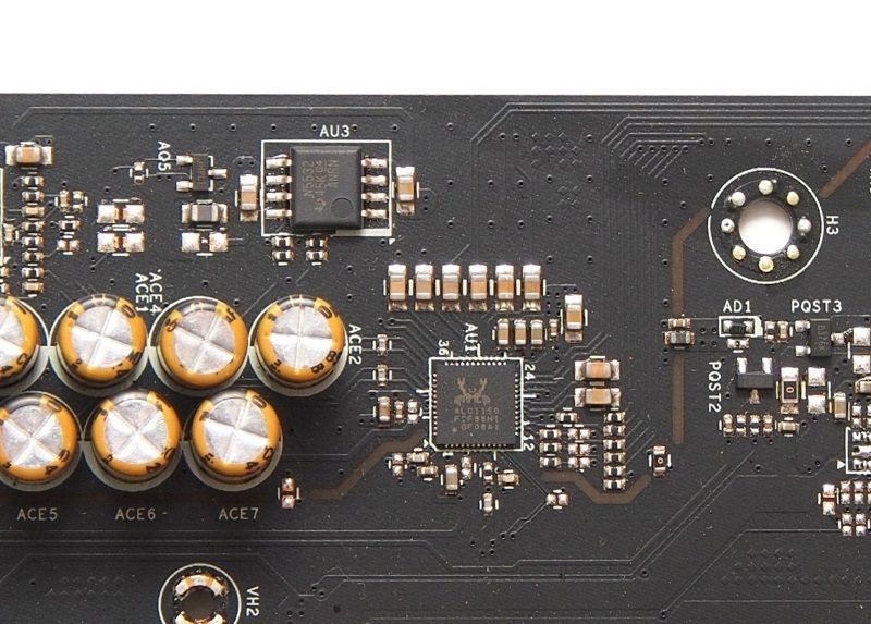 在音效方面,新的 Purity Sound 3 代同樣選用 Realtek ALC1150 加上兩顆 Ti NE5532 放大晶片,再搭配 Nichicon Fine Gold 系列音效電容,基本的 PCB 切割隔離也是不會少,這在目前主打電競的主機板上已經算是制服配備,在雜訊抑制以及音效表現上有一定水平,真要說比較可惜的大概就是不會發光。