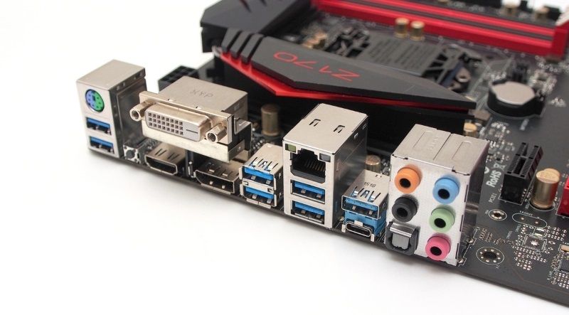 在背板 IO 部分,擁有 PS/2 x1、USB 3.0 x 6、USB 3.1 Type-A + Type-C,顯示輸出方面則提供 DVI-D、HDMI 以及 DisplayPort,HDMI 旁邊的按鈕則是用來 clear CMOS。