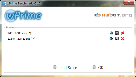wprime 32M 花費 9.486 秒、1024M 花費 298.13 秒。