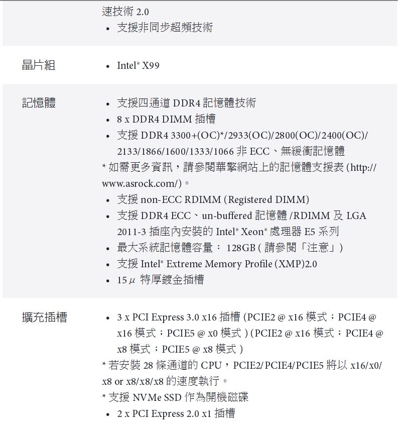 而且華擎2011-3 X99的主機好像都可以通吃ECC的記憶體,是這樣的嗎?