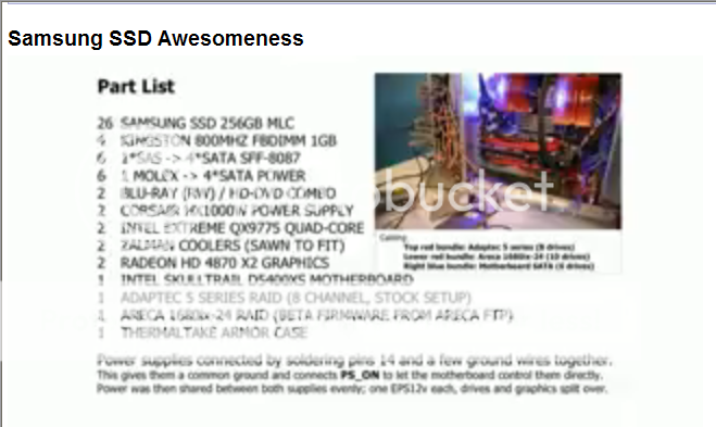 lee0715 wrote:所以應該和他接幾顆SSD沒關係吧(如果有,原理是什麼?)反而他用哪個牌子的倒是滿好奇?_?...(恕刪) 影片裡的白板上就有寫者 ( Samsung SSD )影片的標題寫者( Samsung SSD Awesomeness )所以是Samsung顆粒的SSD