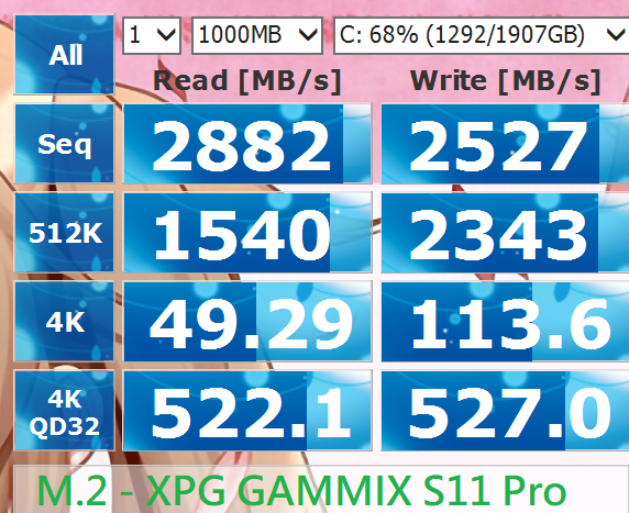 剛剛試了下隨機讀寫 虛擬硬碟還是比M.2 SSD快上很多 雖然沒有實體記憶體原本那麼快
