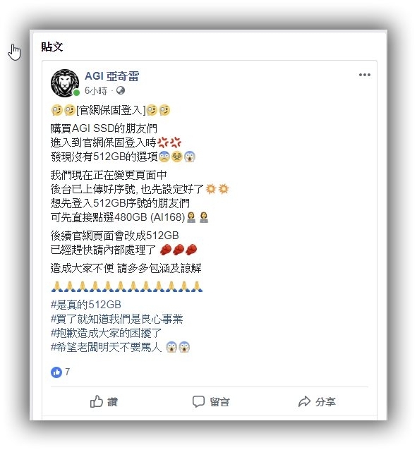 nu1880 wrote:這顆不是512G的嗎...(恕刪) 我也想知道~他序號標籤的型號是:AI168...官網選項:AI168是480G,而且目前根本也沒有512G的選擇出現!剛剛接上機器,確實是512,092,008,448個位元組 (476GB)