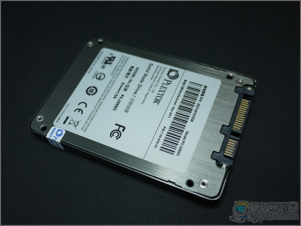 今天的主角Plextor PX-256M3 SSD,外觀一樣是金屬外殼佐以髮絲紋裝飾除了美觀以外也有降溫的效果,大小尺寸與一般的2.5吋HDD無異: