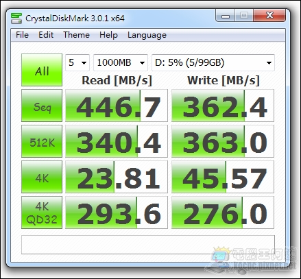 ▲Plextor PX-256M3還是維持讀取446MB/s;寫入362MB/s的成績。