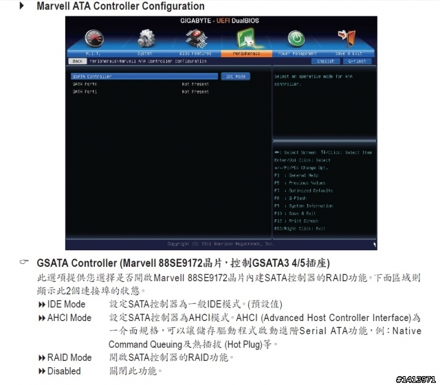 1. 開 AHCI 開到 SATA2 埠, 未開到非原生 SATA3. 而 SSD 插在非原生 SATA3 埠.2. 請至 BIOS 開啟非原生 SATA3 埠的 AHCI.在做此動作之前, 請先至官網下載並安裝 Marvell SATA 控制驅動程式http://www.gigabyte.tw/products/product-page.aspx?pid=4074#dl3. 可以試一下將 SSD 接到 SATA2 埠, 跑分一定會比樓主在一樓所貼的圖還要高.