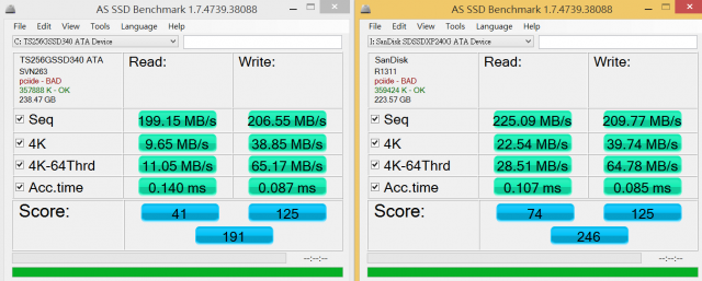 左邊是 創見 340 256GB,右邊是 Sandisk Extreme 2 240GB