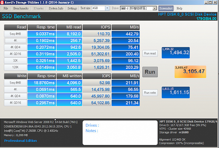 跟基礎值差異可以超過10倍,就太誇張到真的沒有參考意義了。這些一看就知道是灌水灌出來的而已,實際上根本沒有這效能。至於為什麼要灌水....因為你們愛看,現在製程顆粒太慢,所以才要美化。只要設定條件後就能跑超快,但是數據不同之後就沒有用了。三顆SATA2 SSD共48顆粒組成也不過是這種原始值,你說能跑很高是怎麼變得?要QD和跑快取,好歹也來個這速度,看了心情更好點,不要還刻意誤導消費者那是真實速度....無中生有的QD,還能隨意變換,消費者不是更開心嗎??