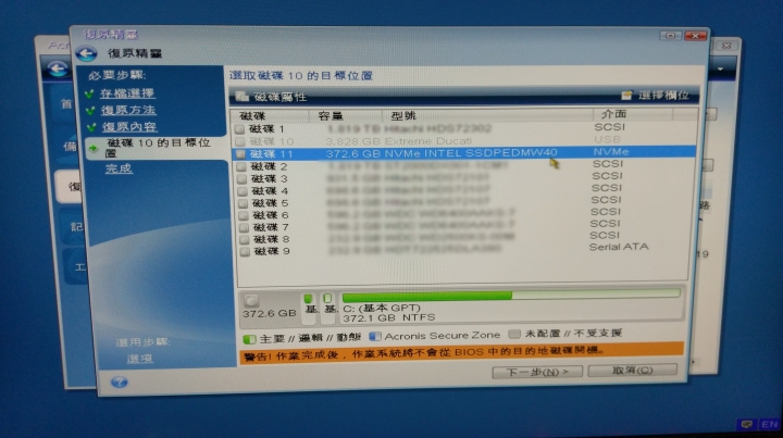 用了EaseUS Todo Backup Free 10.0跑出了"不支援分區類型和操作系統所在的硬碟"這警告視窗無法做備份