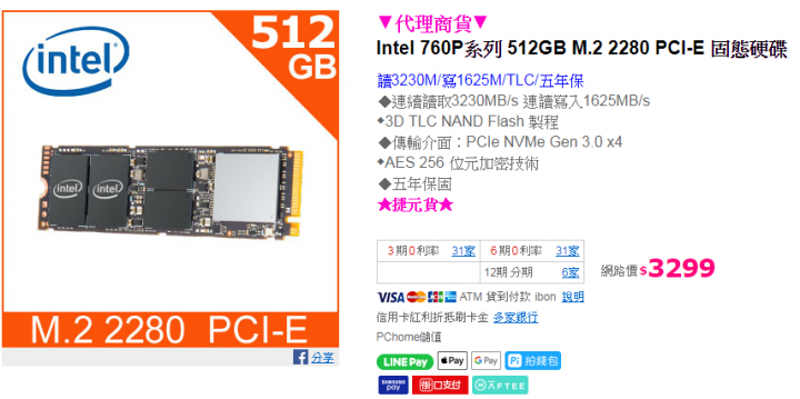 在P家上面看到冠元和Intel的這兩顆,價差並不大(660P貴100元)