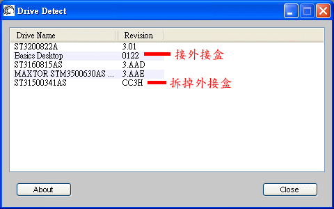 上面有拿到0122的大大,不用失望0122是外接盒的軔體CC3H是硬碟的軔體,兩者不一樣。我接外接盒時,原廠drivedetect看到的軔體就是0122。拆掉外接盒,硬碟的貼紙則為CC3H。這時直接接主機板sata,原廠drivedetect也顯示CC3H。我的RMA 是2014-MAR-17要略過外接盒,直接得知硬碟的軔體版本,看一下59樓大大用的程式我自己是沒用過,因為我直接拆了裝機><