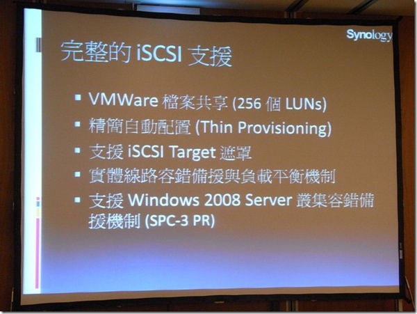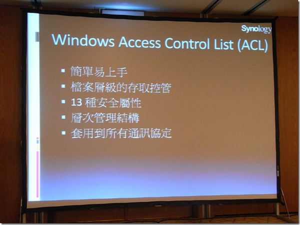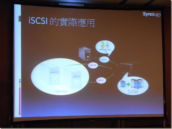 這張投影片,介紹了iSCSI及Windows ACL的應用範例。不過照片不是拍得很清楚,就請湊合的看吧!
